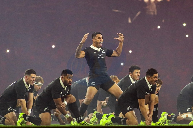 Rieko Ioane of New Zealand leads the Haka during the Quilter Nations Series 2025 match Wales vs New Zealand at Principality Stadium, Cardiff, United Kingdom, 22nd November 2025, Credit:Andrew Lewis/News Images / Avalon