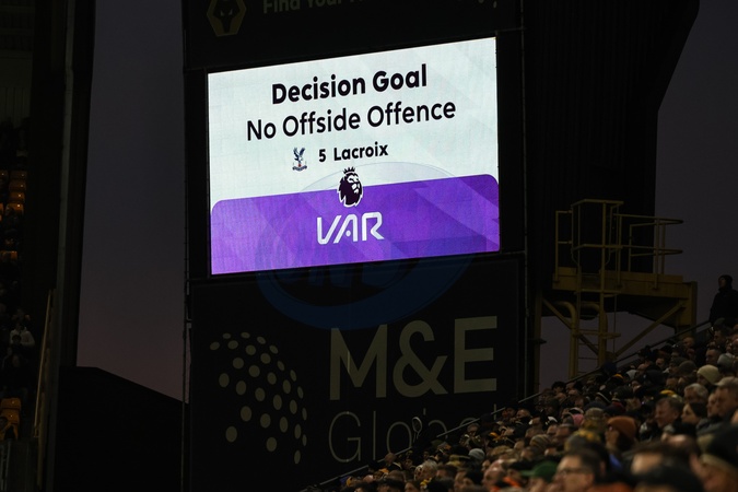 VAR no offside for the Daniel Munoz of Crystal Palace goal during the Premier League match Wolverhampton Wanderers vs Crystal Palace at Molineux, Wolverhampton, United Kingdom, 22nd November 2025, Credit:Mark Cosgrove/News Images / Avalon