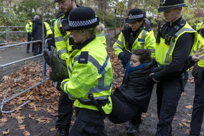 The Peace Garden, Tavistock Square, WC1H 9BQ — Saturday 22nd November 2025. Protesters gathered for the second London "Lift the Ban” event, opposing the government's ban on direct-action group Palestine Action. The demonstration formed part of the wider "Defend Our Juries” campaign. Police maintained a strong presence throughout the protest, during which approximately 100 people were arrested for terrorism offences., Credit:Abdullah Bailey / Avalon