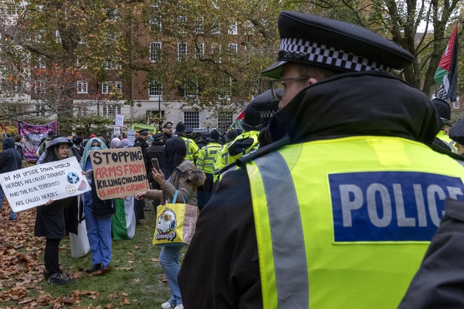 The Peace Garden, Tavistock Square, WC1H 9BQ — Saturday 22nd November 2025. Protesters gathered for the second London "Lift the Ban” event, opposing the government's ban on direct-action group Palestine Action. The demonstration formed part of the wider "Defend Our Juries” campaign. Police maintained a strong presence throughout the protest, during which approximately 100 people were arrested for terrorism offences., Credit:Abdullah Bailey / Avalon