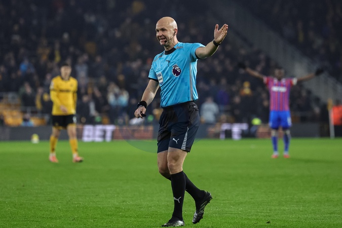 Referee Anthony Taylor in action during the Premier League match Wolverhampton Wanderers vs Crystal Palace at Molineux, Wolverhampton, United Kingdom, 22nd November 2025, Credit:Mark Cosgrove/News Images / Avalon