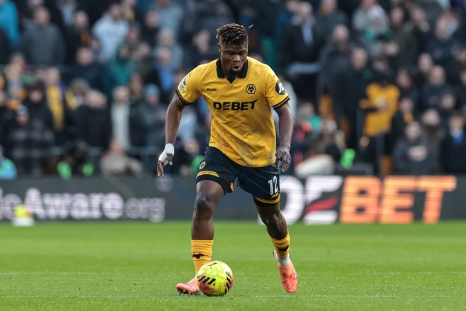 Emmanuel Agbadou of Wolverhampton Wanderers breaks with the ball during the Premier League match Wolverhampton Wanderers vs Crystal Palace at Molineux, Wolverhampton, United Kingdom, 22nd November 2025, Credit:Mark Cosgrove/News Images / Avalon