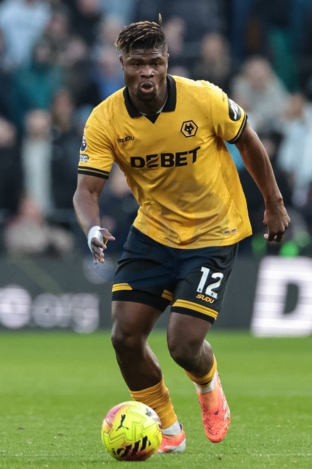 Emmanuel Agbadou of Wolverhampton Wanderers breaks with the ball during the Premier League match Wolverhampton Wanderers vs Crystal Palace at Molineux, Wolverhampton, United Kingdom, 22nd November 2025, Credit:Mark Cosgrove/News Images / Avalon