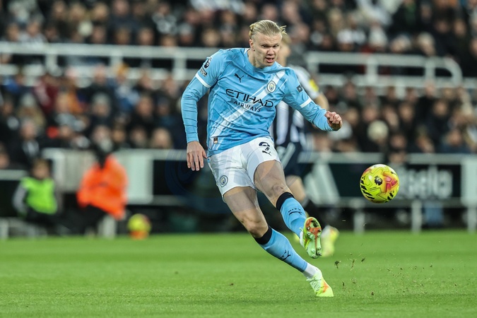 Erling Haaland of Manchester City shoots wide of goal during the Premier League match Newcastle United vs Manchester City at St. James's Park, Newcastle, United Kingdom, 21st November 2025, Credit:Ae Cosgrove/News Images / Avalon