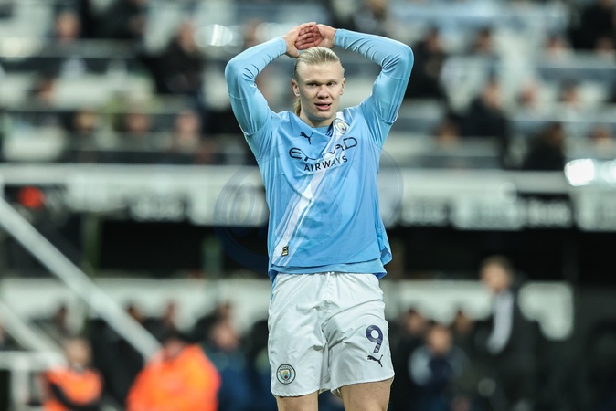 Erling Haaland of Manchester City reacts to a missed shot on goal during the Premier League match Newcastle United vs Manchester City at St. James's Park, Newcastle, United Kingdom, 21st November 2025, Credit:Ae Cosgrove/News Images / Avalon