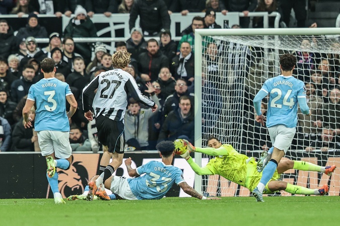 Gianluigi Donnarumma of Manchester City saves a shot from Nick Woltemade of Newcastle United during the Premier League match Newcastle United vs Manchester City at St. James's Park, Newcastle, United Kingdom, 21st November 2025, Credit:Ae Cosgrove/News Images / Avalon