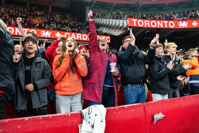 Welsh fans celebrate during the Quilter Nations Series 2025 match Wales vs New Zealand at Principality Stadium, Cardiff, United Kingdom, 22nd November 2025, Credit:Andrew Lewis/News Images / Avalon
