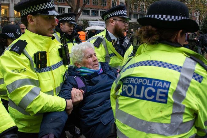 London, UK, 22nd November 2025 - Defend Our Juries protest in Tavistock Square as part of their "Lift The Ban" campaign, protestors openly expressed support for the proscribed organisation Palestine Action, by writing "I support Palestine Action" on placards and sitting on the floor, they were all arrested under the terrorism act en masse., Credit:Will Colebourne / Avalon
