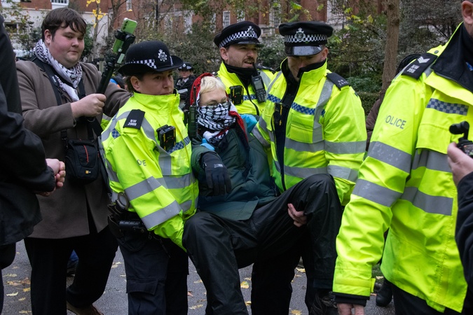 London, UK, 22nd November 2025 - Defend Our Juries protest in Tavistock Square as part of their "Lift The Ban" campaign, protestors openly expressed support for the proscribed organisation Palestine Action, by writing "I support Palestine Action" on placards and sitting on the floor, they were all arrested under the terrorism act en masse., Credit:Will Colebourne / Avalon