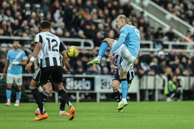 Erling Haaland of Manchester City controls the ball during the Premier League match Newcastle United vs Manchester City at St. James's Park, Newcastle, United Kingdom, 21st November 2025, Credit:Ae Cosgrove/News Images / Avalon