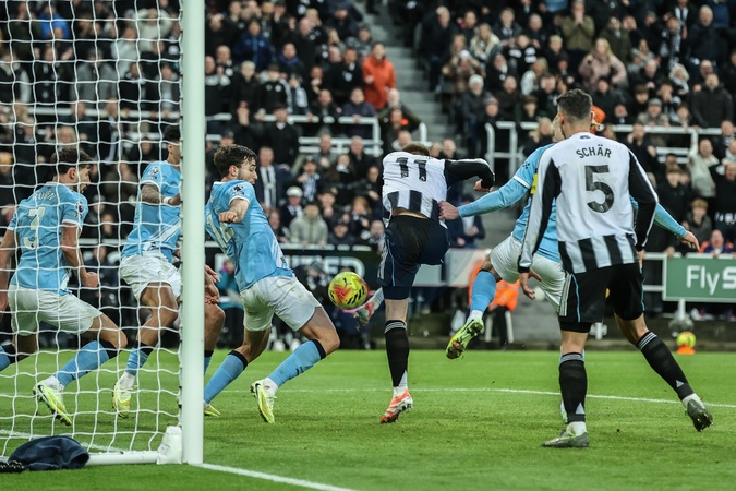 Harvey Barnes of Newcastle Untied scores to make it 2-1 during the Premier League match Newcastle United vs Manchester City at St. James's Park, Newcastle, United Kingdom, 21st November 2025, Credit:Ae Cosgrove/News Images / Avalon