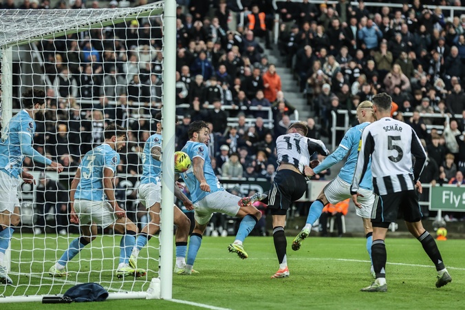 Harvey Barnes of Newcastle Untied scores to make it 2-1 during the Premier League match Newcastle United vs Manchester City at St. James's Park, Newcastle, United Kingdom, 21st November 2025, Credit:Ae Cosgrove/News Images / Avalon