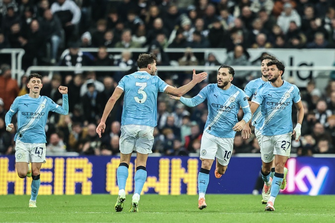 Ruben Dias of Manchester City celebrates his goal to make it 1-1 during the Premier League match Newcastle United vs Manchester City at St. James's Park, Newcastle, United Kingdom, 21st November 2025, Credit:Ae Cosgrove/News Images / Avalon