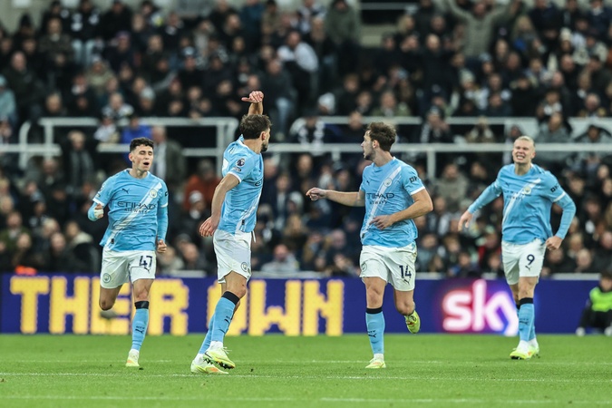 Ruben Dias of Manchester City celebrates his goal to make it 1-1 during the Premier League match Newcastle United vs Manchester City at St. James's Park, Newcastle, United Kingdom, 21st November 2025, Credit:Ae Cosgrove/News Images / Avalon