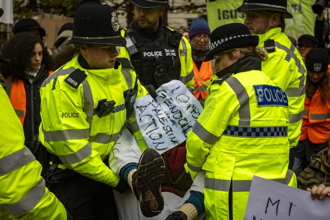 Defend Our Juries Support Protest for Palestine Action – London. A protest was held in Central London in support of the recently proscribed group Palestine Action. Demonstrators displayed banners and placards reading "I oppose genocide — I support Palestine Action” and condemned the government's decision to label the group as a terrorist organisation. The demonstration saw a significant police presence, with multiple protesters detained and taken away during the protest., Credit:Zak Irfan / Avalon