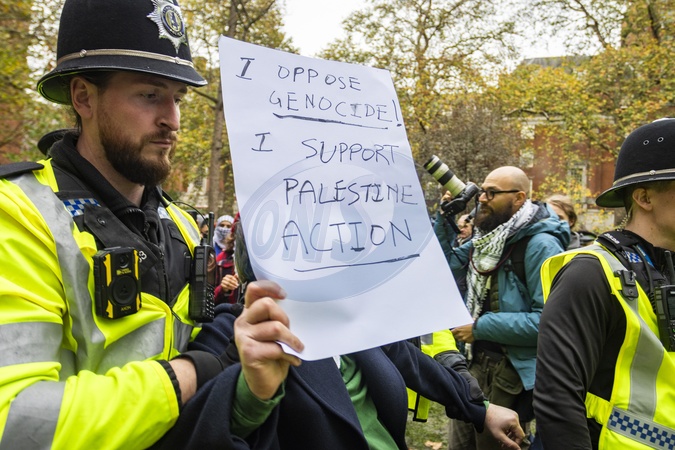 Defend Our Juries Support Protest for Palestine Action – London. A protest was held in Central London in support of the recently proscribed group Palestine Action. Demonstrators displayed banners and placards reading "I oppose genocide — I support Palestine Action” and condemned the government's decision to label the group as a terrorist organisation. The demonstration saw a significant police presence, with multiple protesters detained and taken away during the protest., Credit:Zak Irfan / Avalon