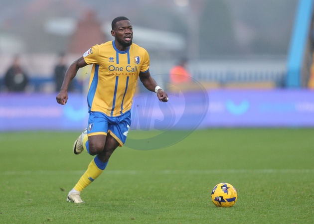 Adedeji Oshilaja of Mansfield Town breaks with the ball during the Sky Bet League 1 match Mansfield Town vs Huddersfield Town at One Call Stadium, Mansfield, United Kingdom, 22nd November 2025, Credit:Richard Bierton/News Images / Avalon