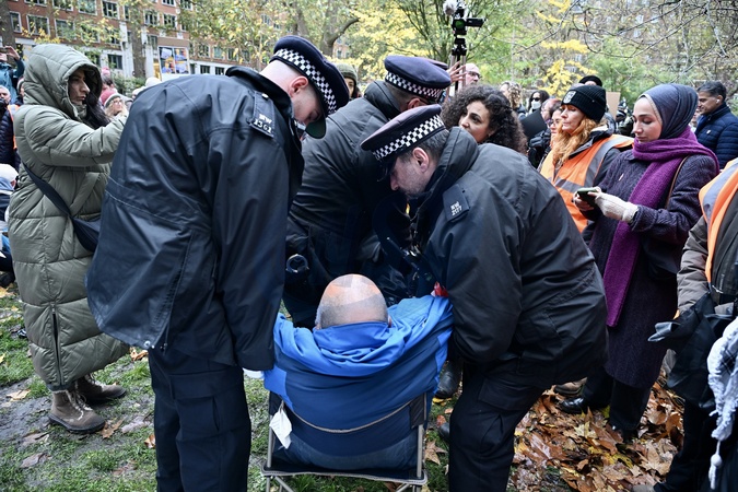 London, UK. Palestine Action Protest in Tavistock Square. The civil action group, "Defend Our Juries," launched a day of nationwide protest, despite the threat of police arrest. The group face a judicial review into the government's decision to classify Palestine Action as a terrorist group., Credit:Michael Melia / Avalon