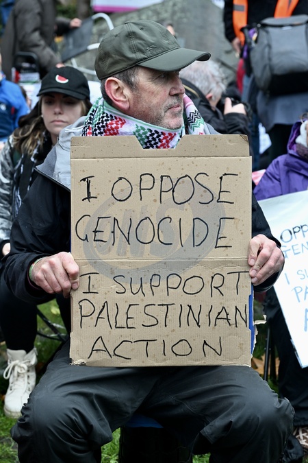 London, UK. Palestine Action Protest in Tavistock Square. The civil action group, "Defend Our Juries," launched a day of nationwide protest, despite the threat of police arrest. The group face a judicial review into the government's decision to classify Palestine Action as a terrorist group., Credit:Michael Melia / Avalon