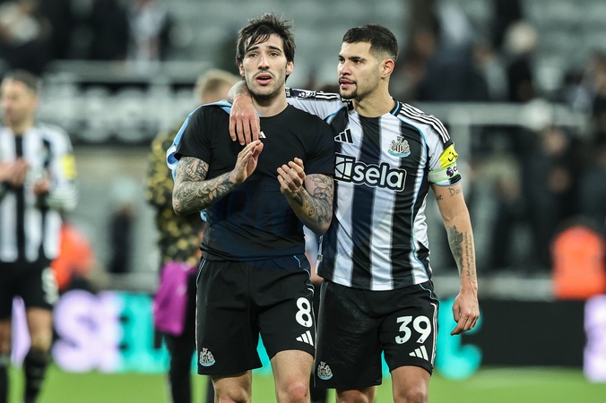 Sandro Tonali of Newcastle Untied and Bruno Guimaraes of Newcastle United applaud the fans after the game during the Premier League match Newcastle United vs Manchester City at St. James's Park, Newcastle, United Kingdom, 21st November 2025, Credit:Ae Cosgrove/News Images / Avalon