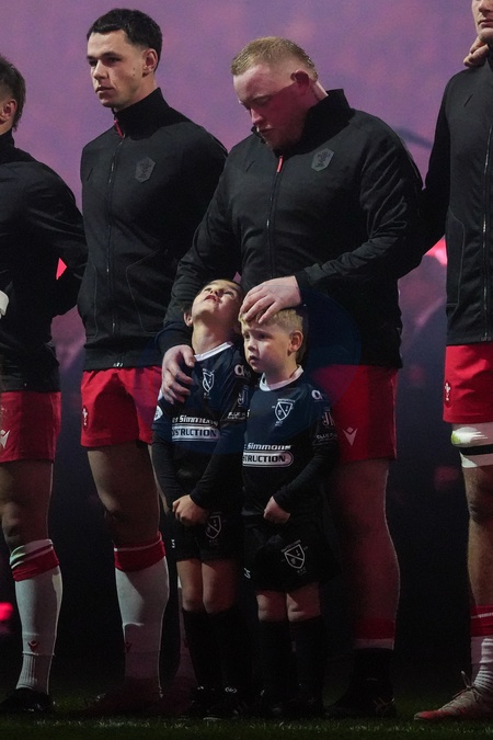 Keiron Assiratti of Wales and his children, as mascots during the Quilter Nations Series 2025 match Wales vs New Zealand at Principality Stadium, Cardiff, United Kingdom, 22nd November 2025, Credit:Andrew Lewis/News Images / Avalon