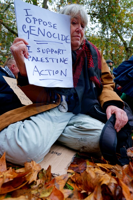 22 November 2025. London. Protesters gathered in Tavistock Square in a peaceful "Lift the Ban" protest organised by the group Defend Our Juries. The protesters hope to end to the proscription of Palestine Action, holding signs reading "I oppose genocide. I support Palestine Action” campaigners condemned the ban as an attack on democracy., Credit:Aldo Ciarrocchi / Avalon