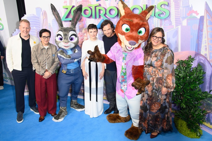 (L-R) - Director Jared Bush, Ke Huy Quan, Judy Hopps, Ginnifer Goodwin, Jason Bateman, Nick Wilde, Yvett Merino attends The "Zootropolis 2" UK Premiere at Picturehouse Central, London, England, UK on Sunday 23 November, 2025., Credit:Justin Ng / Avalon