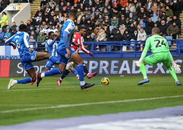Tyrese Campbell of Sheffield United scores to make it 0-1 during the Sky Bet Championship match Sheffield Wednesday vs Sheffield United at Hillsborough, Sheffield, United Kingdom, 23rd November 2025, Credit:Richard Bierton/News Images / Avalon