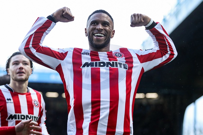 Tyrese Campbell of Sheffield United celebrates after scoring to make it 0-2 during the Sky Bet Championship match Sheffield Wednesday vs Sheffield United at Hillsborough, Sheffield, United Kingdom, 23rd November 2025, Credit:Jorge Horsted/News Images / Avalon