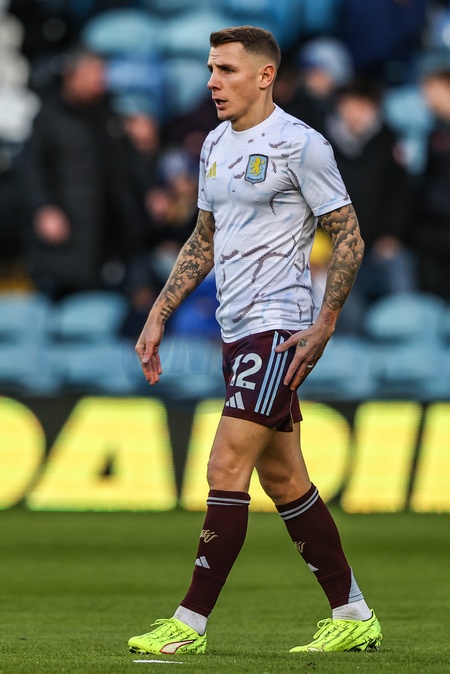 Lucas Digne of Aston Villa in the pregame warmup session during the Premier League match Leeds United vs Aston Villa at Elland Road, Leeds, United Kingdom, 23rd November 2025, Credit:Ae Cosgrove/News Images / Avalon