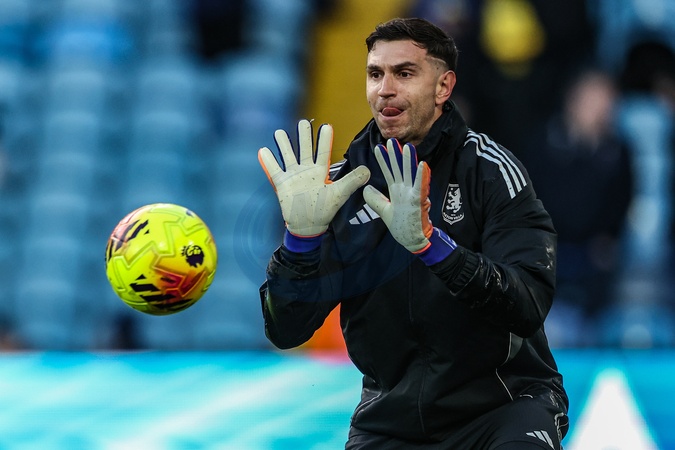 Emiliano Martínez of Aston Villa in the pregame warmup session during the Premier League match Leeds United vs Aston Villa at Elland Road, Leeds, United Kingdom, 23rd November 2025, Credit:Ae Cosgrove/News Images / Avalon