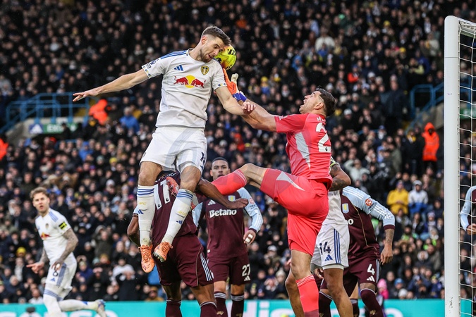 Anton Stach of Leeds United heads the ball in towards the goal for Lukas Nmecha of Leeds United to score to make it 1-0 during the Premier League match Leeds United vs Aston Villa at Elland Road, Leeds, United Kingdom, 23rd November 2025, Credit:Ae Cosgrove/News Images / Avalon