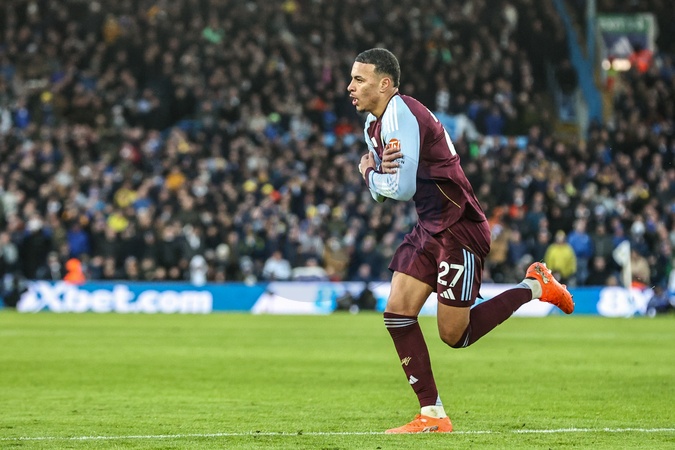 Morgan Rogers of Aston Villa celebrates his goal to make it 1-2 during the Premier League match Leeds United vs Aston Villa at Elland Road, Leeds, United Kingdom, 23rd November 2025, Credit:Ae Cosgrove/News Images / Avalon