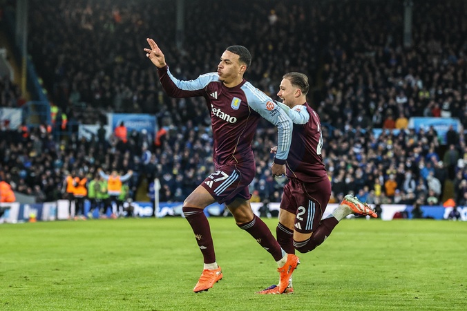 Morgan Rogers of Aston Villa celebrates his goal to make it 1-2 during the Premier League match Leeds United vs Aston Villa at Elland Road, Leeds, United Kingdom, 23rd November 2025, Credit:Ae Cosgrove/News Images / Avalon
