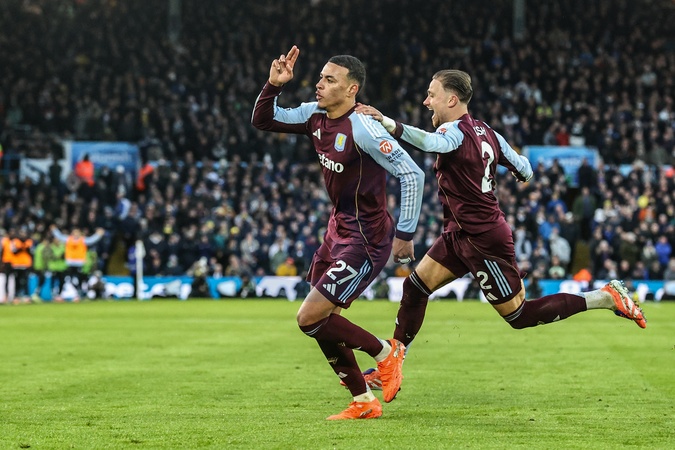 Morgan Rogers of Aston Villa celebrates his goal to make it 1-2 during the Premier League match Leeds United vs Aston Villa at Elland Road, Leeds, United Kingdom, 23rd November 2025, Credit:Ae Cosgrove/News Images / Avalon