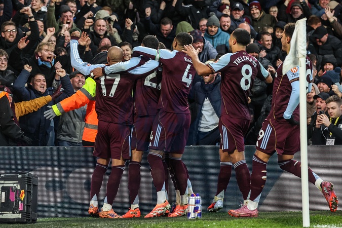 Morgan Rogers of Aston Villa celebrates his goal to make it 1-2 during the Premier League match Leeds United vs Aston Villa at Elland Road, Leeds, United Kingdom, 23rd November 2025, Credit:Ae Cosgrove/News Images / Avalon