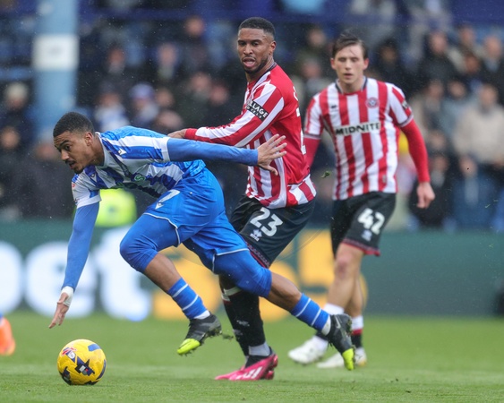 Yan Valery of Sheffield Wednesday is fouled by Tyrese Campbell of Sheffield United during the Sky Bet Championship match Sheffield Wednesday vs Sheffield United at Hillsborough, Sheffield, United Kingdom, 23rd November 2025, Credit:Richard Bierton/News Images / Avalon