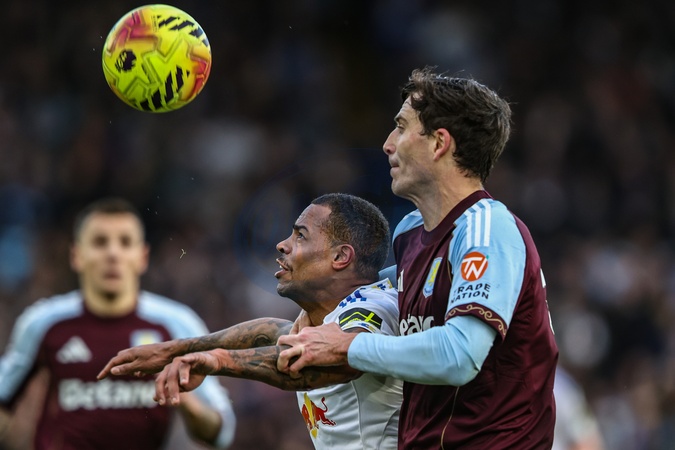 Lukas Nmecha of Leeds United and Pau Torres of Aston Villa battle for the ball during the Premier League match Leeds United vs Aston Villa at Elland Road, Leeds, United Kingdom, 23rd November 2025, Credit:Ae Cosgrove/News Images / Avalon