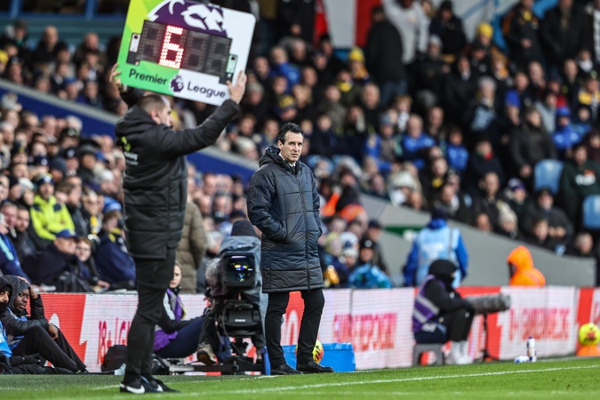 Unai Emery manager of Aston Villa looks on as 6 minutes are added on to the first half during the Premier League match Leeds United vs Aston Villa at Elland Road, Leeds, United Kingdom, 23rd November 2025, Credit:Ae Cosgrove/News Images / Avalon