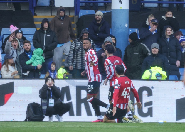 Tyrese Campbell of Sheffield United celebrates his goal to make it 0-2 during the Sky Bet Championship match Sheffield Wednesday vs Sheffield United at Hillsborough, Sheffield, United Kingdom, 23rd November 2025, Credit:Richard Bierton/News Images / Avalon