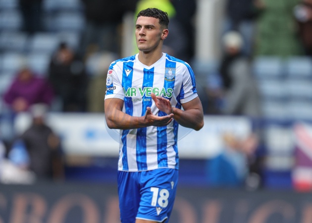 Bailey-Tye Cadamarteri of Sheffield Wednesday applauds the fans during the Sky Bet Championship match Sheffield Wednesday vs Sheffield United at Hillsborough, Sheffield, United Kingdom, 23rd November 2025, Credit:Richard Bierton/News Images / Avalon