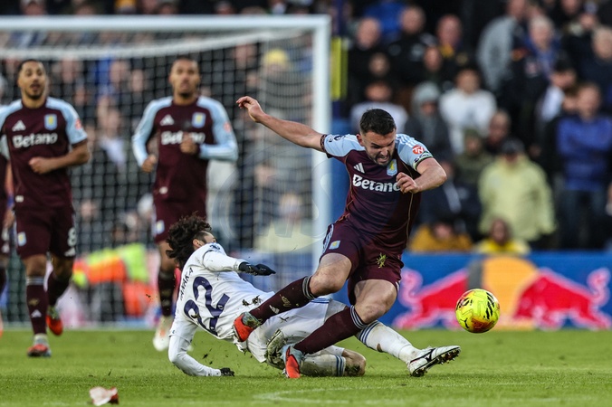 JohnMcGinn of Aston Villa is tackled by Ao Tanaka of Leeds United during the Premier League match Leeds United vs Aston Villa at Elland Road, Leeds, United Kingdom, 23rd November 2025, Credit:Ae Cosgrove/News Images / Avalon