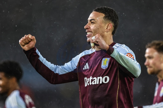 Morgan Rogers of Aston Villa celebrates the win during the Premier League match Leeds United vs Aston Villa at Elland Road, Leeds, United Kingdom, 23rd November 2025, Credit:Ae Cosgrove/News Images / Avalon