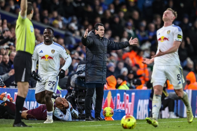 Unai Emery manager of Aston Villa reacts during the Premier League match Leeds United vs Aston Villa at Elland Road, Leeds, United Kingdom, 23rd November 2025, Credit:Ae Cosgrove/News Images / Avalon