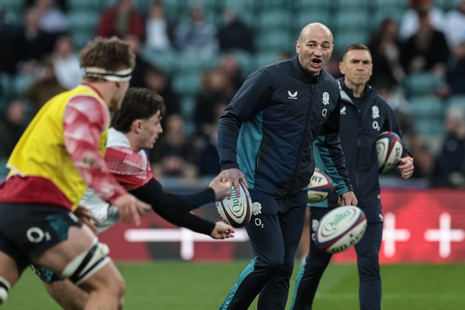 Steve Borthwick head coach of England gives instruction in the pre-game warm up during the Quilter Nations Series 2025 match England vs Argentina at Allianz Stadium, Twickenham, United Kingdom, 23rd November 2025, Credit:Mark Cosgrove/News Images / Avalon