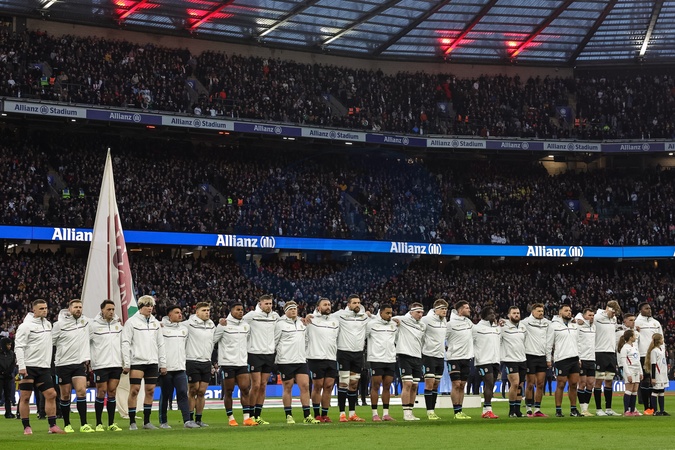 England team sing the national anthem God save the King during the Quilter Nations Series 2025 match England vs Argentina at Allianz Stadium, Twickenham, United Kingdom, 23rd November 2025, Credit:Mark Cosgrove/News Images / Avalon