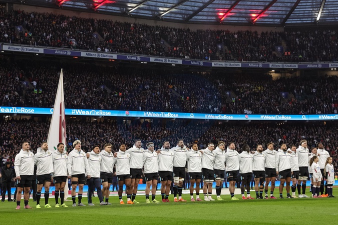 England team sing the national anthem God save the King during the Quilter Nations Series 2025 match England vs Argentina at Allianz Stadium, Twickenham, United Kingdom, 23rd November 2025, Credit:Mark Cosgrove/News Images / Avalon