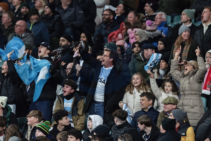 Argentina fans sing and dance late in the game as they make a comeback during the Quilter Nations Series 2025 match England vs Argentina at Allianz Stadium, Twickenham, United Kingdom, 23rd November 2025, Credit:Mark Cosgrove/News Images / Avalon