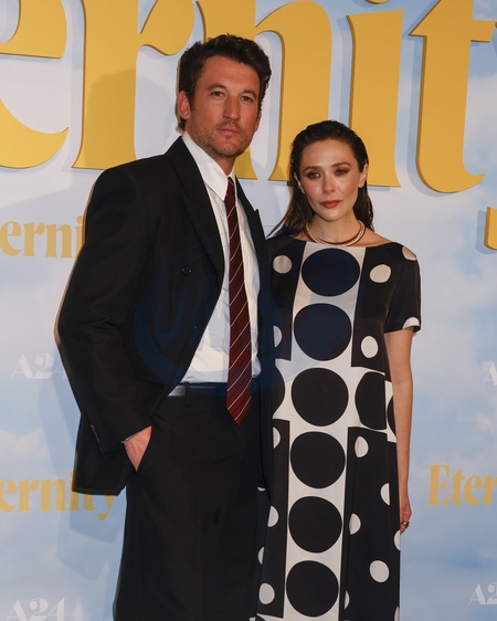 Miles Teller and Elizabeth Olsen attending the Eternity UK Premiere at the Everyman Battersea in Battersea Power Station, London, United Kingdom, Credit:Cat Morley / Avalon