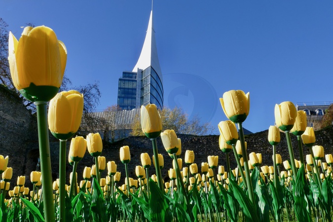 The grounds of Reading Abbey Ruins are covered with yellow tulip lights ready for the evenings Illuminate Reading., Credit:Geoffrey Swaine / Avalon